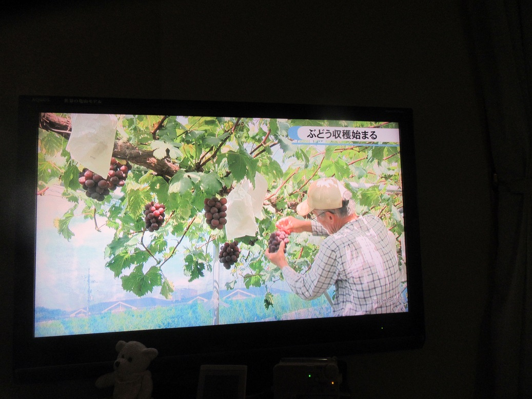 毎年この時期にみまちゃんネルに出て、ぶどうの食べ頃の紹介をしています。今日はテレビのみまちゃんネルニュースで写る日だったので、ブログに書いてみました。美作ぶどう部会の紹介や、彩菜茶屋で9月17日・18日にぶどう祭りをすることをお知らせしました。はずかしいですが、これも仕事と思っています。