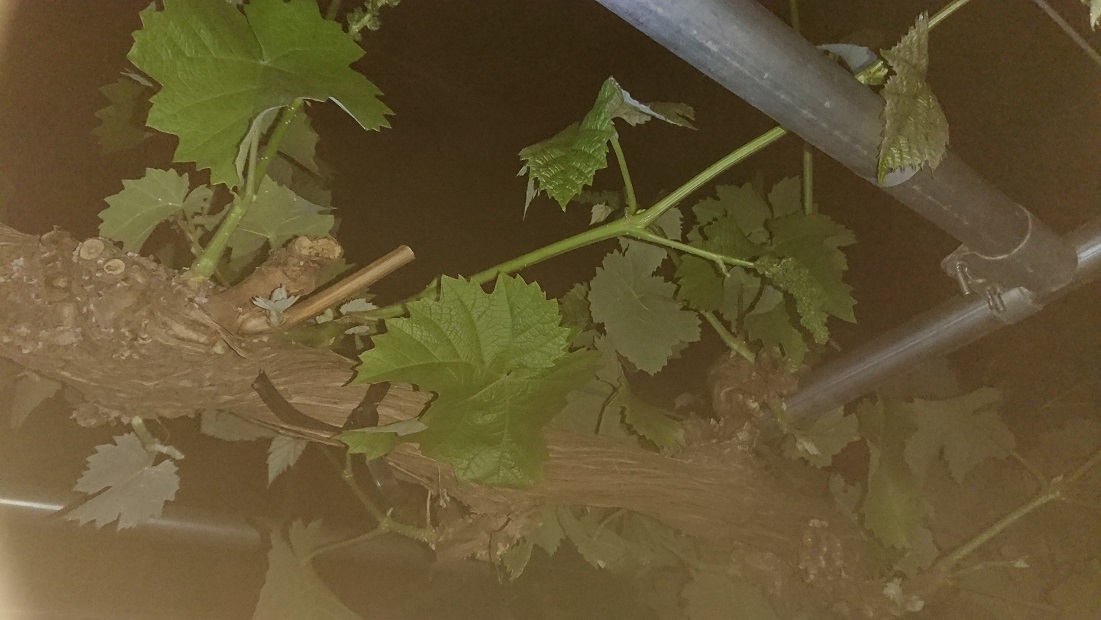 なんと「瀬戸ジャイアンツ」の若枝がたくさん萎れています。他の品種には萎れは無いのに瀬戸だけ。萎れた若枝の数は5~10%。急遽、予定した房づくりの作業を止めて、ポンプを出して潅水しました。何とかこれ以上萎れる若枝の数が増えなければいいのですが‥。
