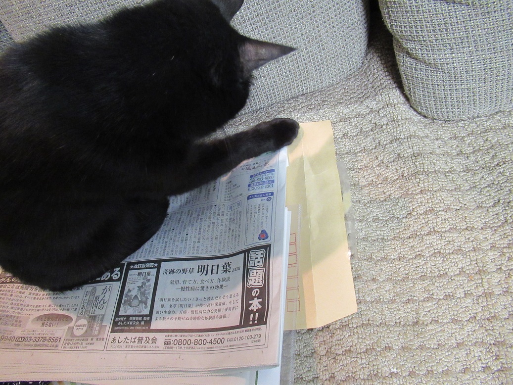 誘引3日め。まだまだ1ヶ月以上続く誘引ですが、なんともしんどいブドウ作りを癒やしてくれるのは、クロとピーです。クロは猫、ピーはインコです。どっちもニャーニャー、ピーピーと鳴くので相手をしてやらなくてはならず、なかなか大変です。まあかわいいのですが。夕食後、ふと見ると、クロがめずらしく耳を下げてかわいげな格好をしているので、どうしたんかな、と思っていると、なんと家の中までケムシを連れて来ていました(私が)動く小さなケムシを相手にたまをとり、しばらく遊んでいました。見てやろうと思うとガバッと隠してしまい、もうつぶしただろうと思っていると、小さなケムシがまだ動いているではありませんか。そのうちすぐに飽きてしまったので私がつぶしました。