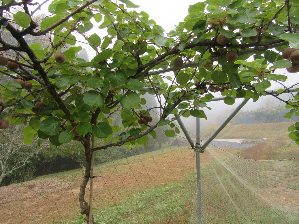 晴美ファームではぶどう園の土づくりを粘質土の第1ファームはミニバックホーで砂質土の第3ファームはホーレーで簡単に行っています。本来なら10月末までに終わっていなければいけないのですが今年はここ数週間ほとんど降らなかったのでまだできていません。やっと先日待望の雨が降り、次の金曜日にも降る予報なので急いで第1ファームの土づくりをすることにしました。しかし、作業が遅れたためにぶどう園は落ち葉で一杯です。このままバックホーを動かせば病気を持った落ち葉を土の中にすき込んでしまいます。そこで、今日はぶどうの落ち葉を処理しましたがなにせすごい量の落ち葉なので拾うのも大変です。今日は終わらなかったので明日は朝から拾い、それが終わってから土づくりです。