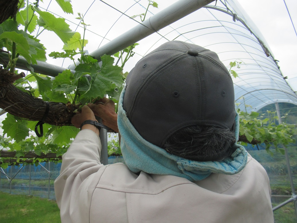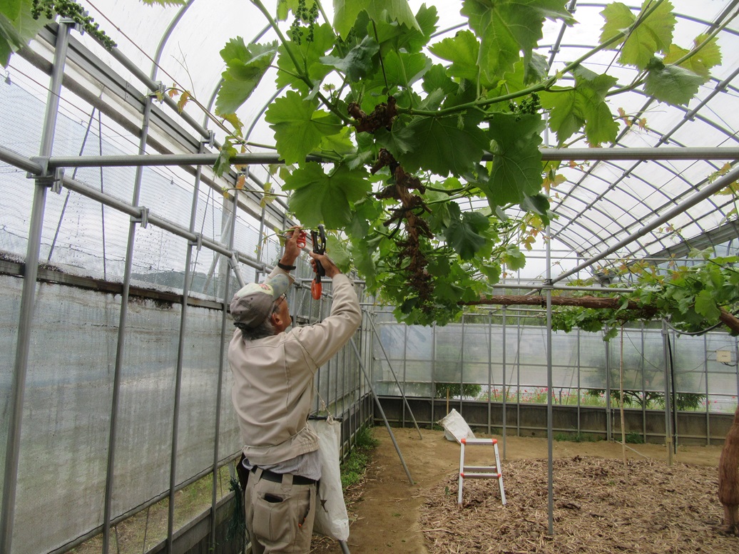 今日はほぼ一日中ハウスのぶどうをなんとかしようと取り組んでいました。朝、食事前の仕事はハウス内のクイーンニーナを、午前中は赤嶺を、午後はロザリオビアンコをしました。しかし、ハウス内のぶどうはどれも難しくて、どうも上手くいってないような気がするのです。作りにくいものを植えているのか、もう木が古くなって、更新の時期が来ているのか迷うところです。特に、ロザリオビアンコは去年、大房のぶどうにしてしまったので、木に負担をかけすぎて今年の穂があまり出てこないようです。いつもそうだとも思うのですが、非常に不安です。余談ですが、今日は仕事の合間をぬって、ぶどう部会の講習会の案内を作って、郵送にかけたので、忙しくて、ブログ写真は取れませんでした。また載せますね。