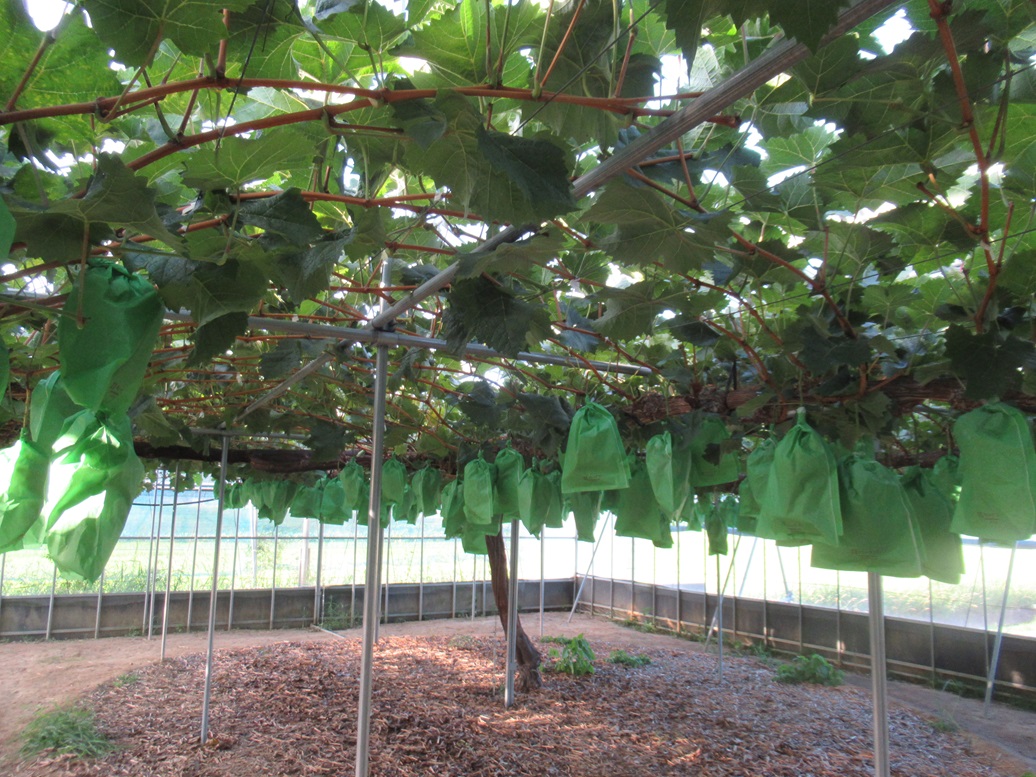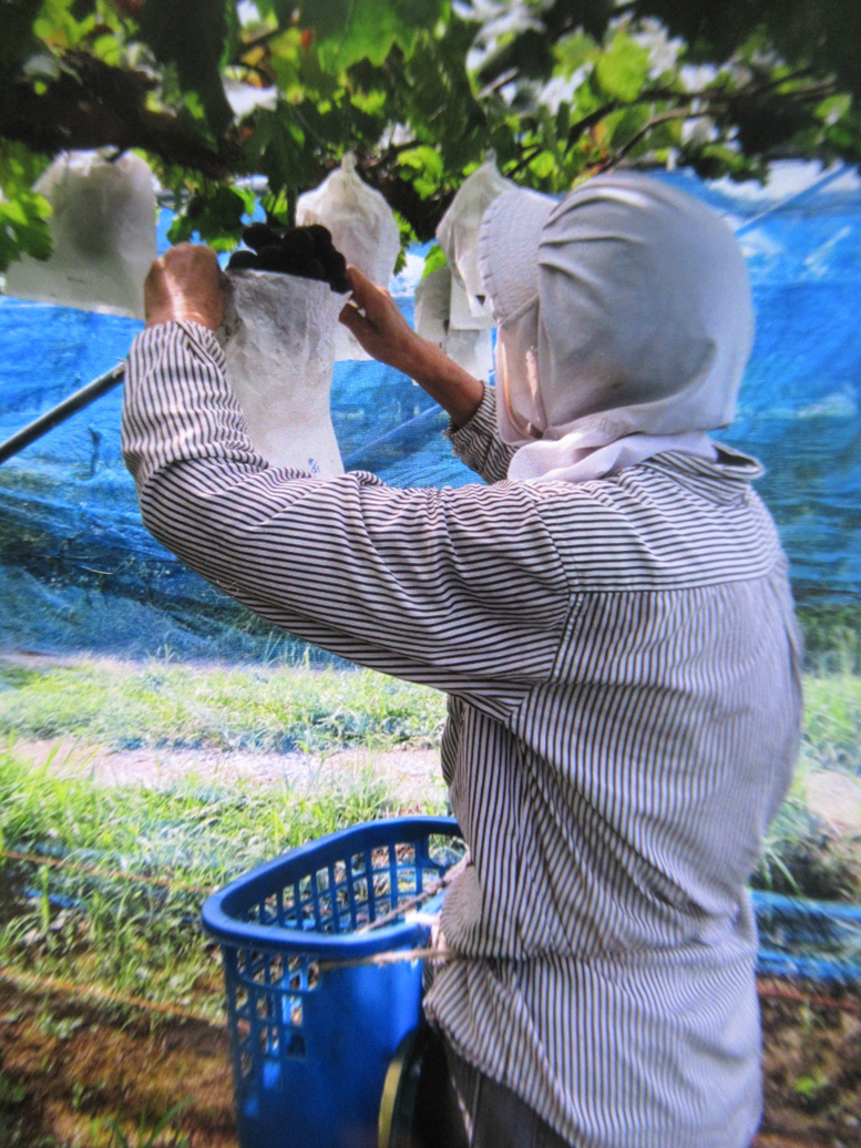 ぶどうを作っている友人に数日前に電話をかけたときに、今はシャインの袋を一つ一つ開けて、石粒を取っている、と言っていました。そのときは何とも思わなかったのですが、昨日うちのシャインは大丈夫か、と心配になり、幾つか袋を開けてみました。「これは、黒くなった粒がけっこう有るかも。」我が家の強力助っ人とパートナーと3人で袋を開ける人、粒を切り取る人と手分けして、黒い粒つまり生理障害の出た粒を取っていきました。やってよかったです。このまま収穫を迎えてふたをかけたらかなりショックを受けるところでした。間引きが不足しているところもあって、ついでにちょこちょこ、粒を取りました。これで、少しは適正な房のブドウになるかもしれません。