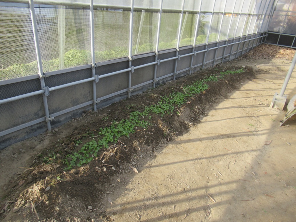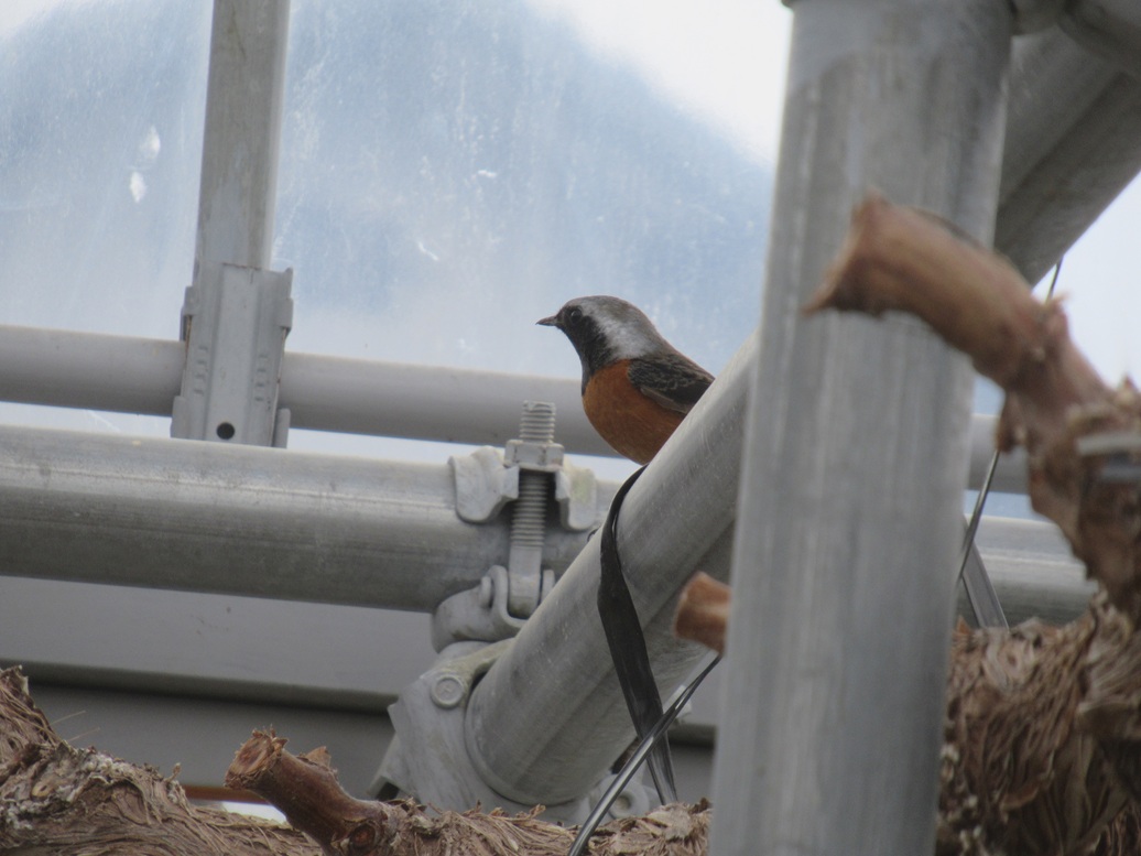 今日は3月の末なのに雪が積もりました。なかなか春になりません。そのせいか、鳥、ヒヨドリなどが新芽をついばみに来て困ります。庭にこぶしのつぼみがありますが、咲く前にかなり食べられてしまいます。今日は小ハウスの中で作業をしていると鳥が入って飛び回っているので、ハウス内で栽培している小松菜の芽を食べに来たな、と思って写真を撮りました。調べてみると、「鳥、腹が茶色」とググると「ジョウビタキ」という鳥でした。食性は虫‼、これは、葉を食べに来たわけではないようでした。ごめんなさい。ハウス内が日中は気温が上がるので、入口を開けたいので、鳥が入って来ないように網にしました。たかが、小松菜、されど小松菜です。食われたら、人間が野菜を食べられません。