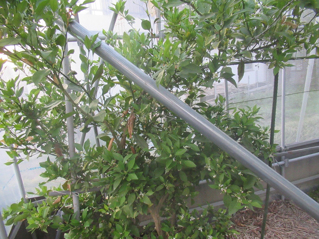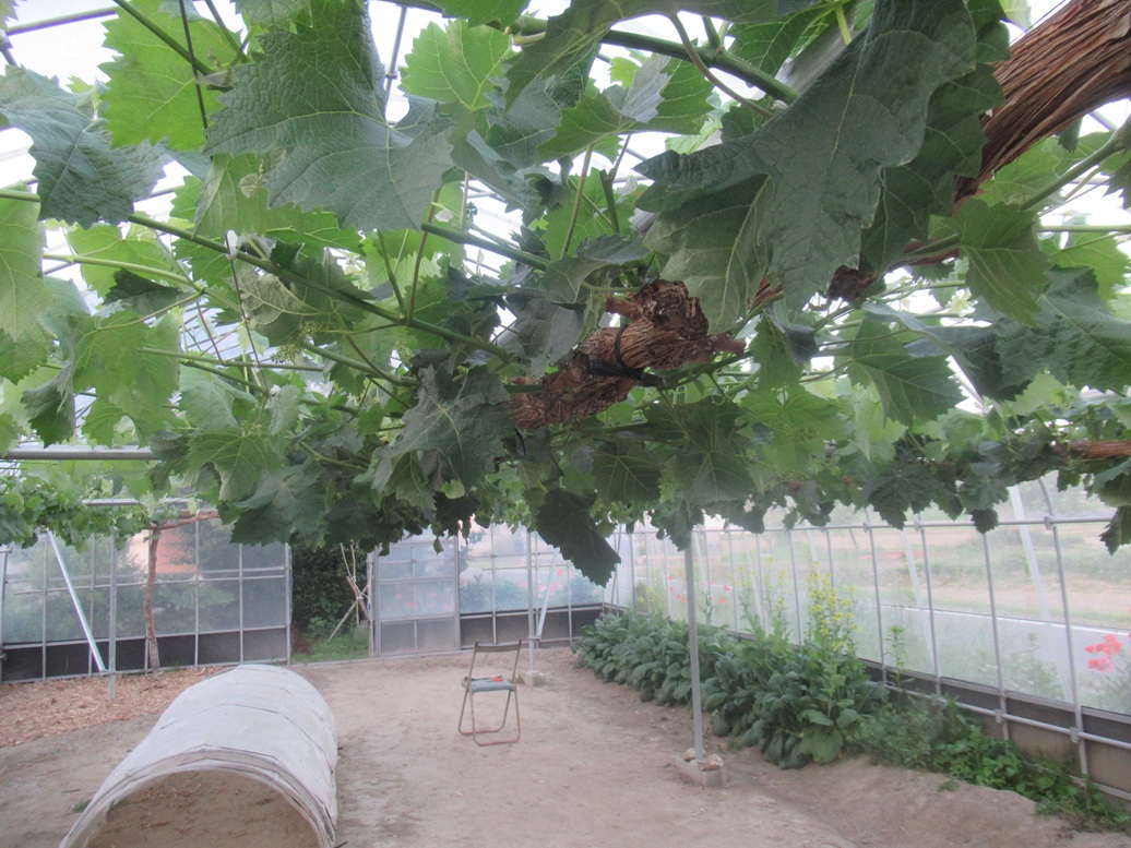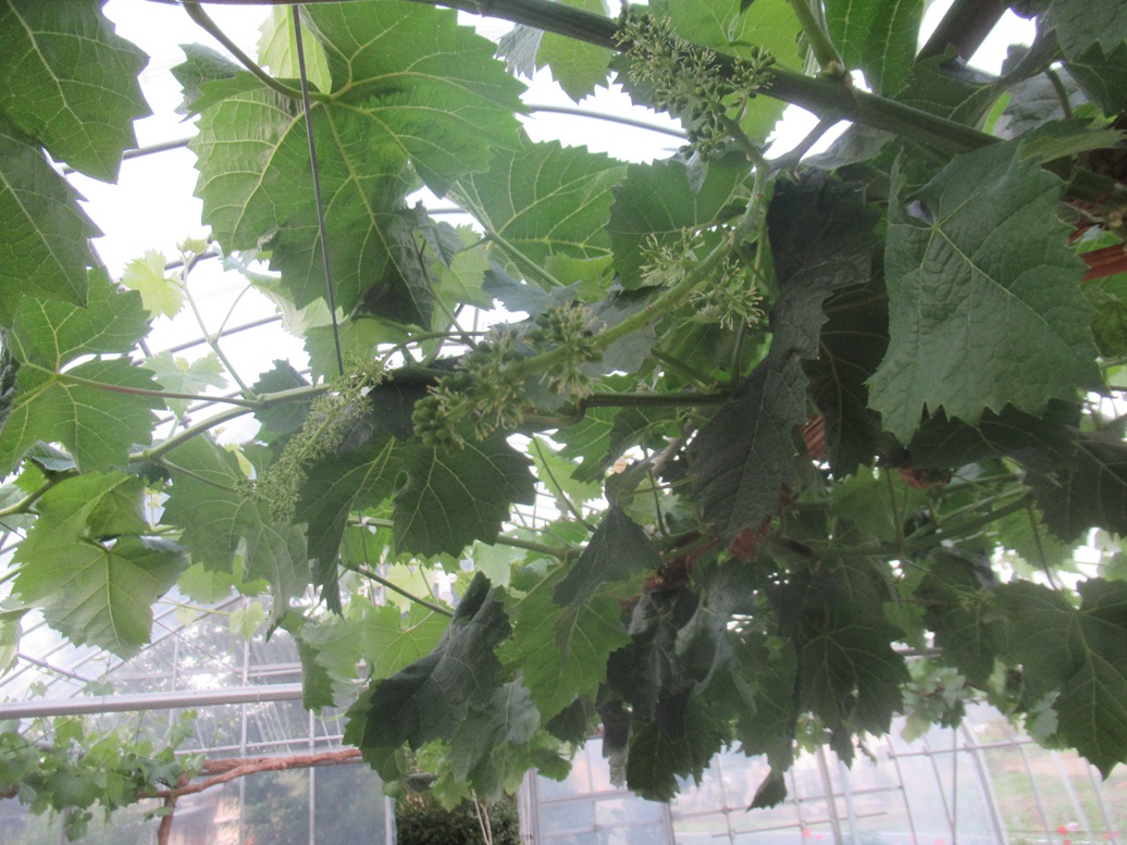 ここに来て非常に困っているのは赤嶺とコトピーの誘引です。まず、一見して、「これはなんじゃー。」と言うぐらいぐちゃぐちゃに込み合っています。ペンチでやさしく挟んで、やわらかくして、いざ、ねじろうとしたとたんにぽろっと落ちてしまいます。なんでか、赤嶺とコトピーの2品種がそれなんです。もう、株がなくなってきて、来年は植え替えか!というところまで来ています。今年こそと思って、ぽろっとと取れやすいので、たとえ取れても、つぎつぎあるぞ、とばかり、多くの芽を残していましたが、なんと、ねじる瞬間にとなりの枝にあたって落ちるという、どうしようもない状態になっています。(写真は後日)