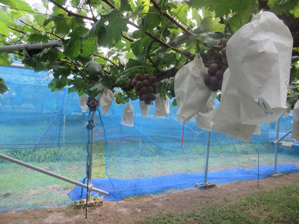 昨日、あれほど対策をしたのに被害がありました。今日は3ふさでした。ほんまに腹がたつ。昨日は電気の柵に草や落葉がかかってないか調べ、電気柵の下をくぐってきたけものではないっ、と決め、電気柵を少し高めに設定しなおしました。さらにわなも引っ張り出してきて、餌(きのうはポテトチップス)を入れてセットしました。ポテトチップスは「アライグマ」を目的としてのわな作戦でしたが、3房くらいなら、ネズミかもしれないと考えるようになりました。県の先生に相談したら、カメラを枝の上や下の方などに合わせて4台をセッチングして帰られました。明日の朝、カメラに小さなけものがうつっていたら、参考になるのですが。IMG_7749IMG_7752