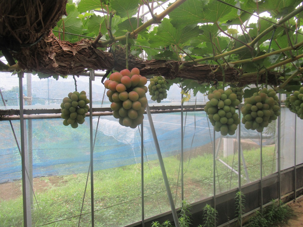 7月の中旬くらいからぶどうの着色が見られると自分の中では思っていたのですか、今か今かと思っている割に遅かったので心配しました。ハウスの中のサニードルチェがまず、赤くなってきました。写真はありませんが、その次に発見したのは第一ファームのピオーネです。紫色になってきました。まだ全体的ではないので、さらに色がついてくれ‼といのるばかりです。