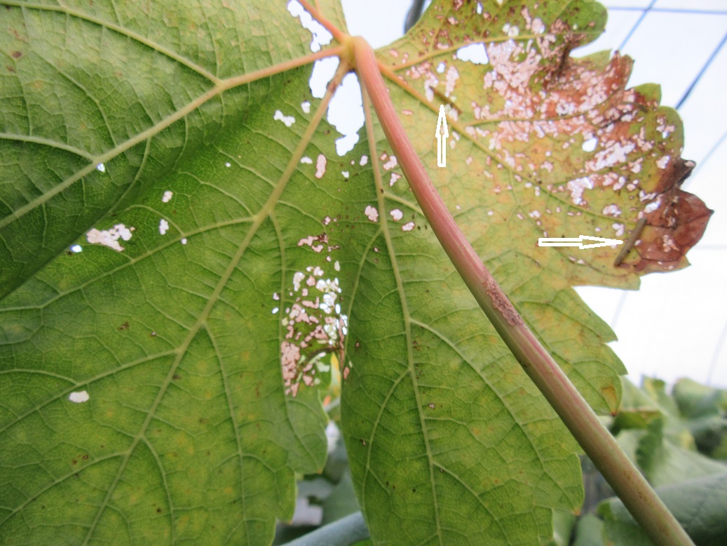 今年は瀬戸ジャイアンツの収穫をしていると網の目のようになった葉を良く見かけます。それもだんだんと広がっています。原因はヨトウムシの幼虫です。最初は小さかったムシも次第に大きくなっています。ぶどうの葉にこれほどヨトウムシが広がったのはぶどう栽培を始めて最初です。栽培暦に従って防除をしてきたのに発生した理由は隣の黒大豆畑から移ったのか?天候によるのか?よく分かりません。瀬戸は収穫中なので殺虫剤の散布はできないので指で潰していますがとても全てを除去することはできません。